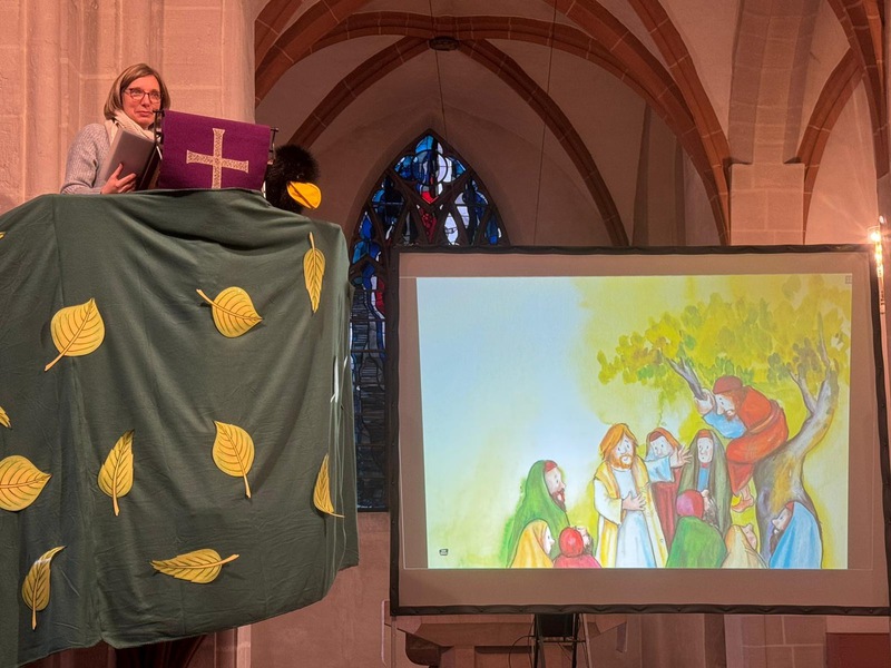 „Kra, kra, kra!“ erklang es laut und deutlich von einem hohen Baum in der Kirche. Wieder einmal erzählte uns unser bekannter Freund, der Rabe, unterstützt von bewegenden Bildern auf der Leinwand, was sich einst in Jericho zutrug.